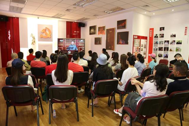 ▲党员师生在昌林路校区观看庆祝中国共产党成立100周年大会实况直播