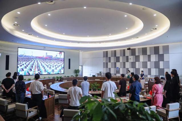 ▲党员师生在虹桥路校区观看庆祝中国共产党成立100周年大会实况直播