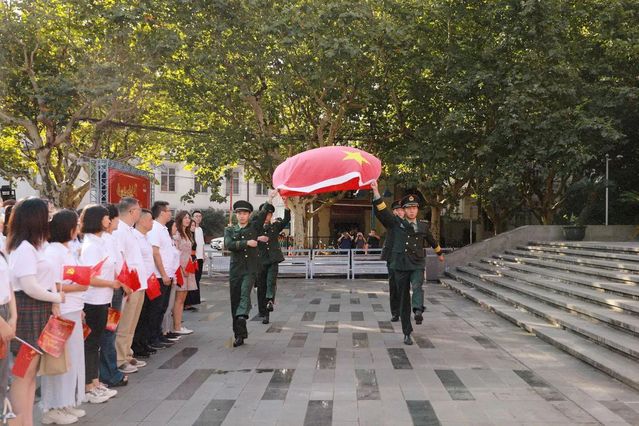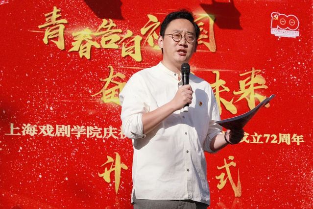 上海戏剧学院党委书记谢巍,党委副书记、副院长张伟令,以及相关职能部门负责人,各院系学生代表近400人参加升旗仪式。本次活动由学工部、团委主办,也是机关第四党支部主题党日活动。