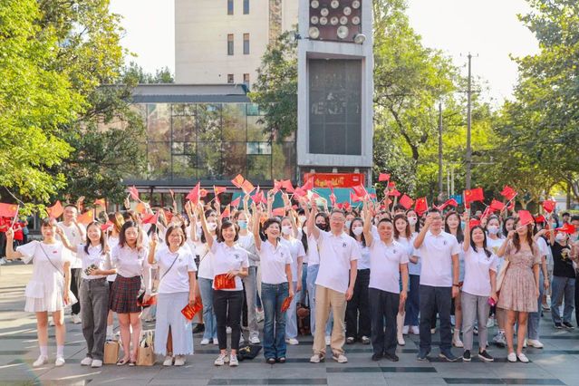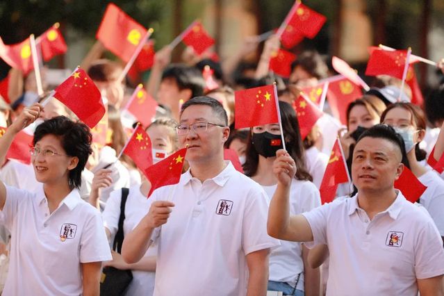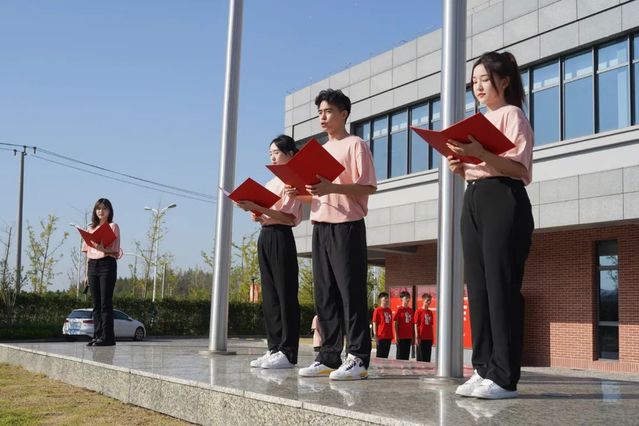 在昌林校区的升旗仪式现场,同学们以嘹亮的歌声献礼祖国,歌唱美好的时代;以激情的朗诵歌颂中华,用青春誓言向祖国告白。