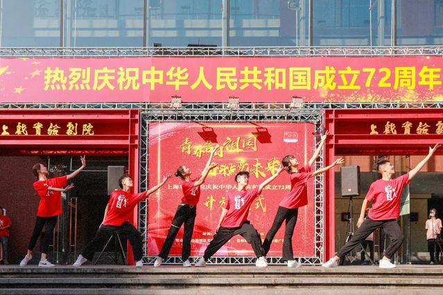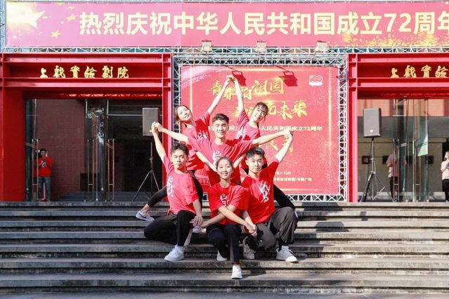舞蹈学院学生朱善文、卞光耀、汪世森、蔡茗伊、于涵、黄玥,以优美的舞姿为共和国华诞送上最美的青春祝福。