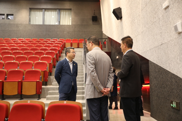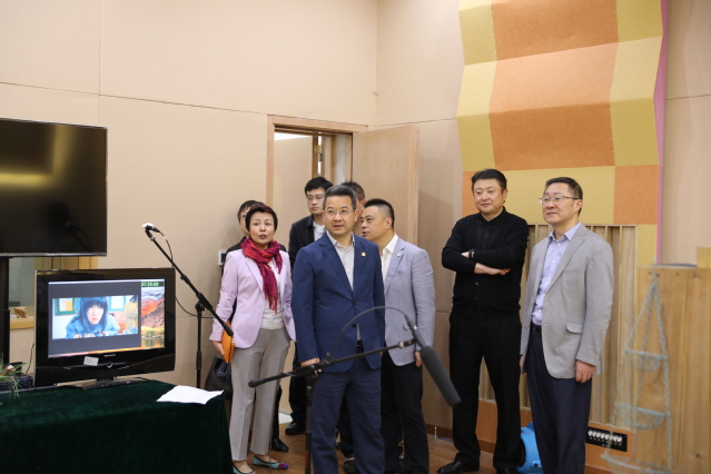 王健儿一行在昌林路校区参观了剧院、摄影棚、放映厅、录音棚等各类教学设施。