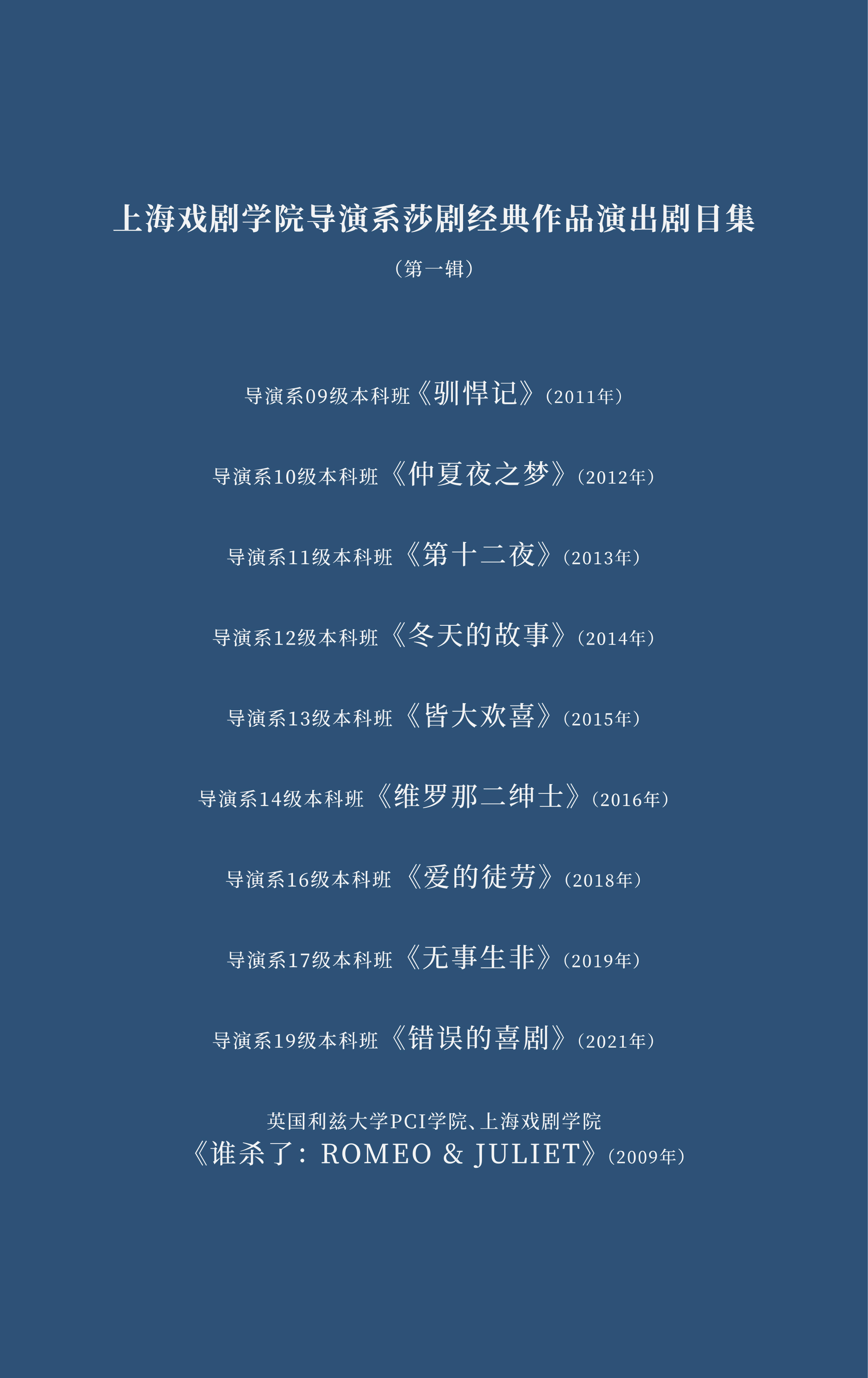 在坚持原创剧目的同时,我们同样重视经典剧目的创作演出。这是十年来我们创排的一系列莎士比亚经典剧目的演出。最近,导演系制做了两套演出光碟,各选了10部新世纪以来导演系创作演出的优秀剧目——《开云足球首页官网下载导演系原创演出作品集(第一辑)》、《开云足球首页官网下载导演系莎剧经典作品演出剧目集(第一辑)。这些既是我们导演系教学的探索与积累,也是课程思政的重要成果,今天借导演系建系60周年之际,做一个特殊的成果发布,希望老师们多提宝贵意见,同学们积极交流学习。
