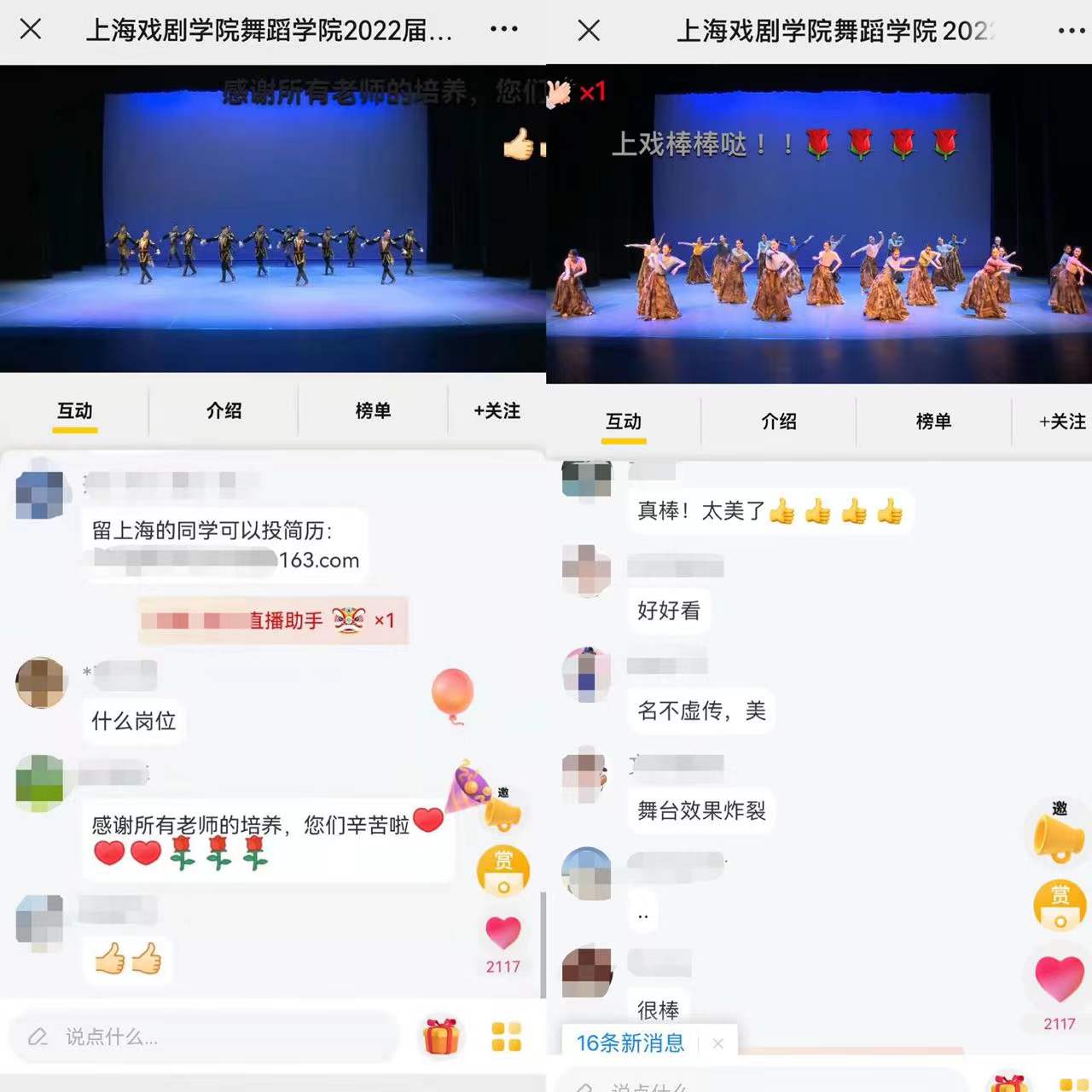 观众们纷纷在评论中表示被“美到了”,对上戏学子的专业水平给予了高度赞扬。有些毕业生家长对学校和老师们表达了感谢,也有用人单位在线招聘希望广纳英才,还有学生表示希望能够报考上戏,有朝一日也成为上戏舞台上的一员。