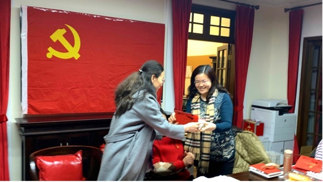 借助熊梓铭同志转正的契机,徐莹给每一位党员准备了政治生日纪念卡。她强调,加入党组织,就意味着政治生命的开始。过好“政治生日”,就是要求每一个党员始终保持一种政治生命的体验,始终保持一种组织归属感和身份荣誉感。组织部部长、党委教师工作部长、人事处处长陈云为支部党员逐一发放了纪念卡,并希望大家牢记自己的政治身份,在工作岗位上继续脚踏实地,砥砺奋进。