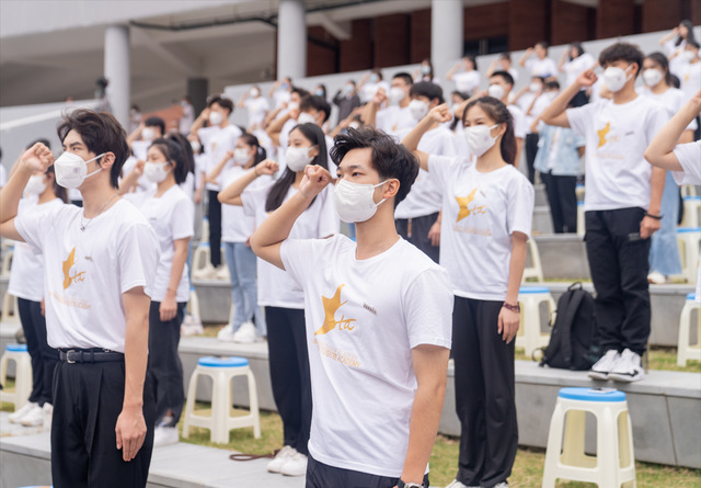 全体2022级新生面向校旗发出响亮的誓言: