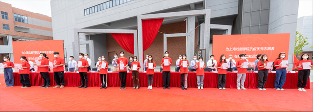在校的抗疫优秀志愿者代表上台领取了证书。同时。大屏幕上还出现了由教师、干部、工勤人员组成的校园核酸检测志愿者名单,以此向志愿者们的辛勤付出致敬。