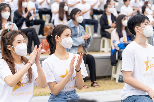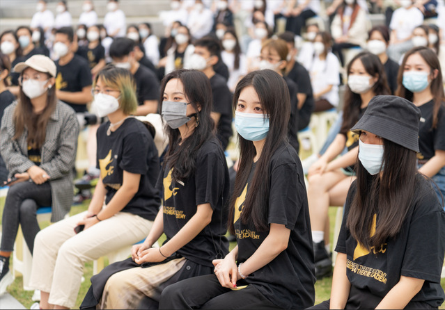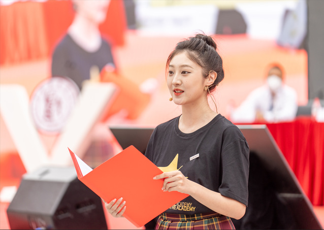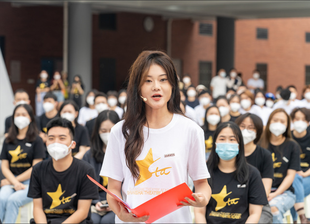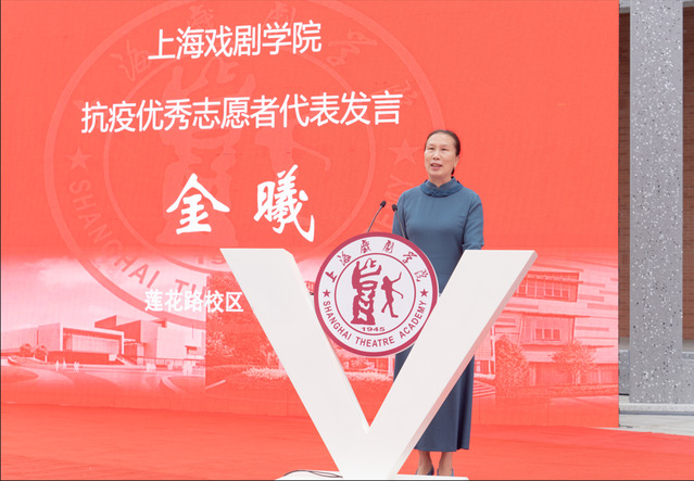 今年的新生开学典礼上,还特别表彰了上半年大上海保卫战期间涌现的上戏优秀校园抗疫志愿者。莲花路校区宿舍主管金曦作为他们中的一员,以动情而朴实的话语再现了疫情期间驻守学校的工勤人员与师生携手战疫,共同守护家园的感人故事,从独特的视角使新生们进一步体会到上戏家园精神的内涵。