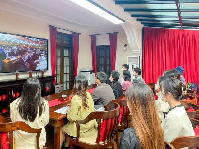 党的二十大举世瞩目。为了使师生们更好地收看开幕会盛况,上海戏剧学院在华山路、昌林路、莲花路、虹桥路四个校区设置了多个直播观摩点。