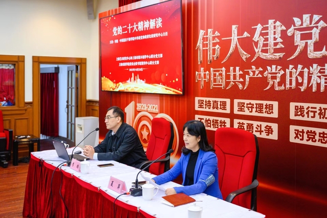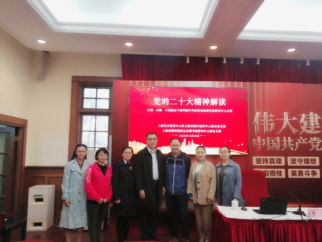 10月28日,上海戏剧学院图书馆、期刊中心联合党支部受上海艺术研究中心和上海市剧本创作中心联合党支部邀请,赴巨鹿路结对共学党的二十大精神。本次主题辅导课特别邀请中国浦东干部学院中外政党和政府比较研究中心主任、法学博士李鹏教授做《弘扬伟大建党精神 以中国式现代化引领中华民族伟大复兴》主旨报告,深刻解读党的二十大精神。