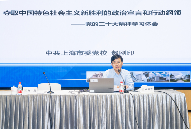 上海市委党校党的建设教研部主任赵刚印教授,应邀在会上作了题为《夺取中国特色社会主义新胜利的政治宣言和行动纲领——党的二十大精神学习体会》辅导报告。