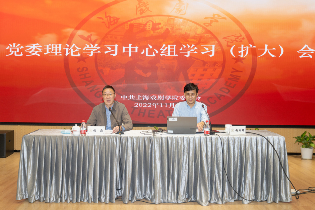 11月4日,上海戏剧学院党委理论学习中心组学习(扩大)会暨党的二十大精神专题学习报告会在华山路校区举行。
