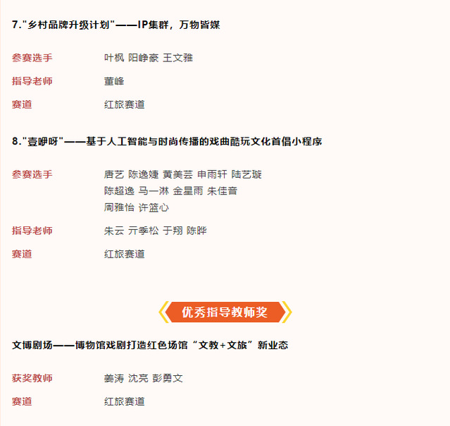 2022年是上戏创新创业工作的突破年,学校大力推进双创课程建设工作、教师队伍建设工作,通过完善创新创业工作考核、评奖体系,研究生双创课程开设必修课等举措,“互联网+”“挑战杯”“中国创翼”等比赛的参赛规模均创历史新高。在取得新突破的基础上,学校将不断总结经验,积极融入科教兴国、人才强国、创新驱动发展等战略。(供稿:上戏教务处、学工部 编辑:榕树)