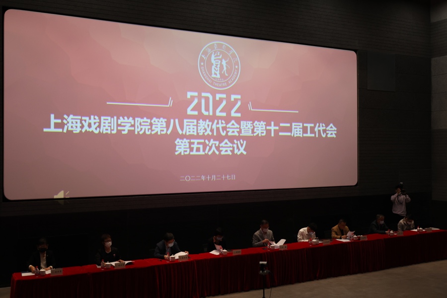2022年10月27日,上海戏剧学院第八届教代会暨第十二届工代会第五次会议在昌林路小区放映厅召开,108名教代会正式代表及50余名列席代表参加会议。