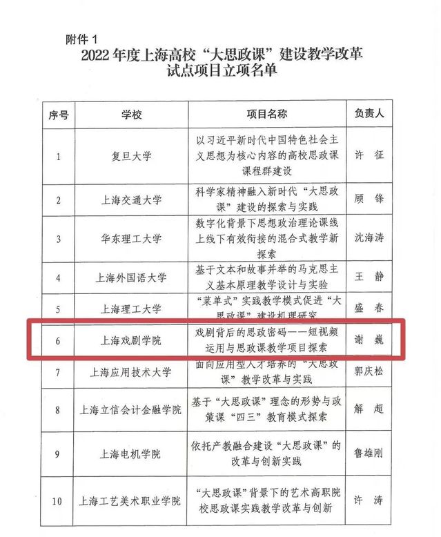 在近期公布的“2022年度上海高校思想政治理论课质量提升行动”评选结果中,开云足球首页官网下载申报的《戏剧背后的思政密码——短视频教学项目探索》,作为2022年度上海高校“大思政课”建设教学改革试点项目成功入选。