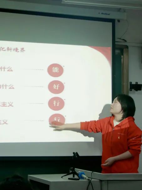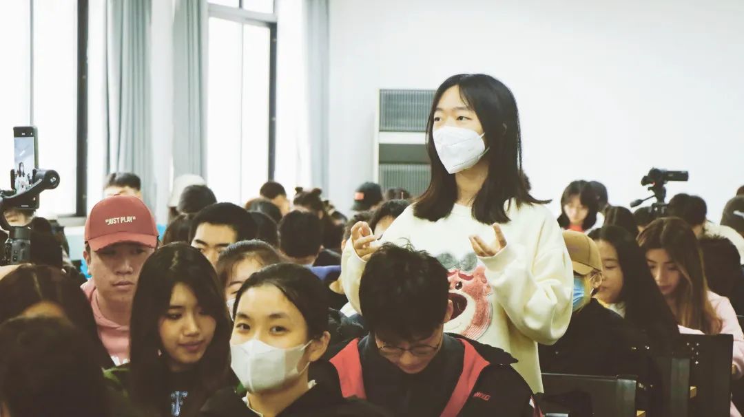 在讲到“增强中华文明传播力影响力”时,宣讲团就“讲好中国故事、传播好中国声音,展现可信、可爱、可敬的中国形象”,再次与戏曲学院同学们展开了热烈的互动。戏曲学院22级戏音专业的学生彭洲洋同学在现场表示:“在戏曲文化中,京剧《穆桂英再挂帅》中的穆桂英,就是一个‘可信、可爱、可敬的中国形象’,具有中华民族的许多优秀品质,我们要用自己的方式去诠释好这些经典的中国形象、中国故事。“切合的主题、生动的互动、激烈的抢答,使整场宣讲自始至终洋溢着热烈的气氛。戏曲学院21级京表专业的闫茹钰和李楠同学,现场带来了一曲戏腔版《灯火里的中国》,表达了对于全面建成社会主义现代化强国的热忱期待。