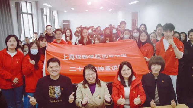 上戏戏曲学院党总支书记王绚,副书记亓季松,创意学院党总支书记方军、副书记唐芳,两院系辅导员以及宣讲团部分成员参加了此次宣讲。