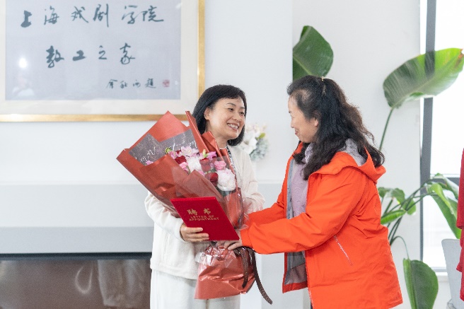 学校党委副书记、副院长、工会主席张伟令发表了讲话,并为侯晓芳老师颁发聘书。教师工作部副部长徐莹老师和工会常务副主席张云蕾老师共同揭牌并为侯老师送上鲜花。