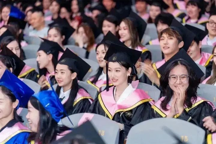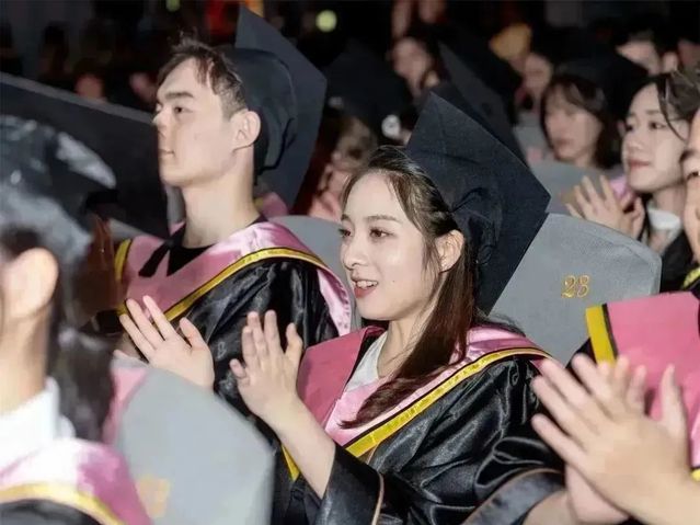 在宣誓环节,全体毕业生起立,举起右手,面向校旗庄严宣誓:“求实求精,至善至美;不忘初心,服务人民。弘扬中国精神,凝聚中国力量,为新时代社会主义文化繁荣兴盛而努力奋斗!”每一句誓词都铿锵有力、激情昂扬,彰显了毕业生的情怀与抱负。
