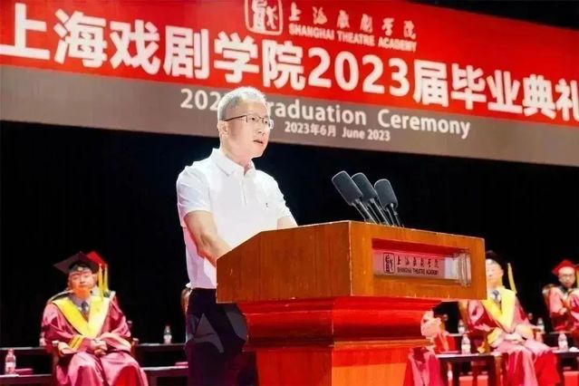 校党委副书记、院长黄昌勇在毕业典礼发表了题为《站在建设中华民族现代文明的潮头》的演讲。他列举了上戏近年来在学科建设、人才培养、创作演出等方面取得的成就,充分肯定了2023届毕业生在求学期间受疫情反复影响的情况下不气馁、不放弃的可贵品质,最终迎来了“花开的日子”。黄昌勇指出,在今年6月2日召开的文化传承发展座谈会上,习近平总书记总结了中华文明的五大突出特性,再次强调“两个结合”,要求更有效地推动中华优秀传统文化的创造性转化、创新性发展,建设中华民族现代文明。如果说“两个结合”中的“第一个结合”,是在五四反传统的文化断裂带上生发出来,并确立了新民主主义文化范式,那么“第二个结合”则强调发掘、传承和发展中华优秀传统文化,是基于对传统文化优良特质的肯定,为建设中华民族现代文明指出方向。他勉励上戏毕业生要勇于做时代的弄潮儿,因为我们迎来了中华文化艺术繁荣发展最好的时代,我们站在了建设中华民族现代文明的潮头!