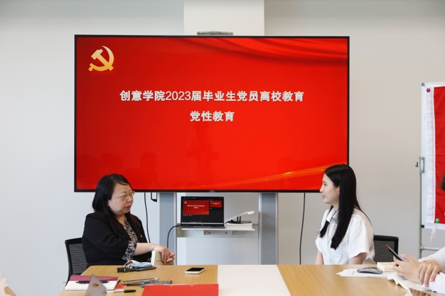 创意学院党总支历来重视党的创新理论的学习和教育。因此,本次活动的第一个环节,就是由创意学院党总支书记方军老师分别与2023届毕业生党员展开轮流对谈,每人约10分钟。