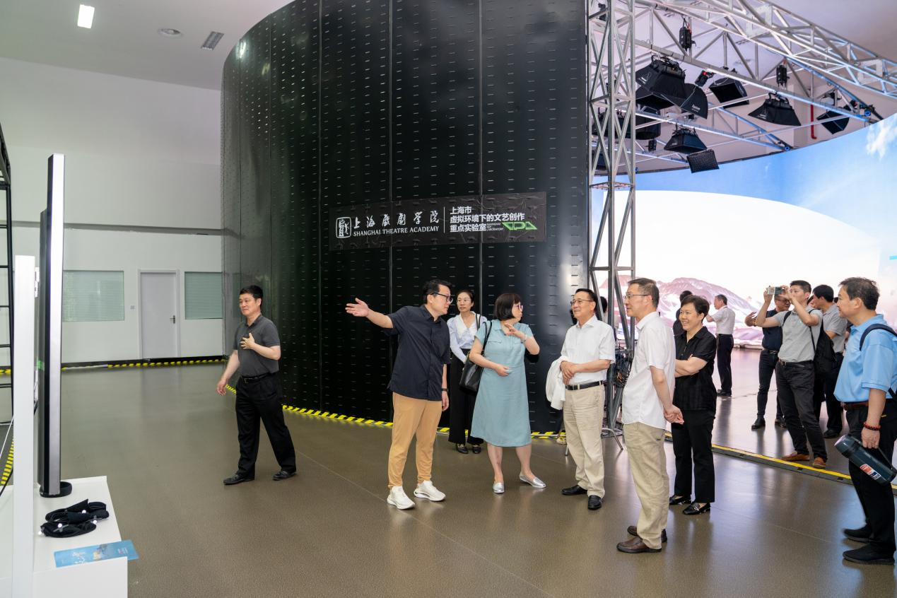 下午,专家考察组在谢巍、黄昌勇的带领下参观了电影学院录音棚、演艺集成创新文化和旅游部重点实验室、上海市虚拟环境下的文艺创作重点实验室以及图书馆“国际影视创意专业文献馆”等“高地大”二期支持建设项目。