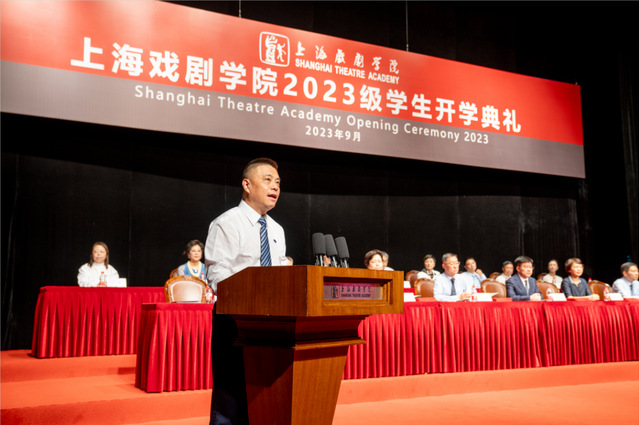 校党委副书记、院长黄昌勇在开学典礼上讲话。他代表学校向近千名刚刚加入上戏大家庭的2023级学生表示热烈的欢迎,并阐述了上戏“小传统”和中华文化“大传统”之间的关系,激励同学们深入了解上戏的历史,感受前辈创办上戏的初心,并从中领悟同中华优秀传统文化一脉相承的精神,从上戏“小传统”和中华文化“大传统”中汲取成长之源。