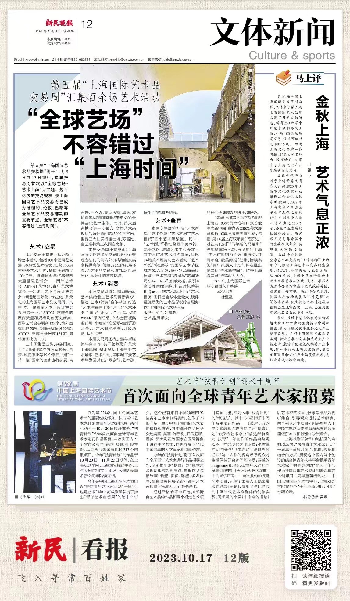 今年是中国上海国际艺术节创设“扶持青年艺术家计划”十周年,也是艺术节与开云足球首页官网下载携手推出“青年艺术创想周”的第十个年头。迄今已有来自不同领域的92位青年艺术家获得委约,创作了78部作品。通过中国上海国际艺术节的扶持和推荐,其中部分作品还多次赴美国、英国、匈牙利、罗马尼亚、挪威、澳大利亚等国家在国际舞台上讲述中国故事,向世界展示当代中国青年的人文理念和创新姿态。