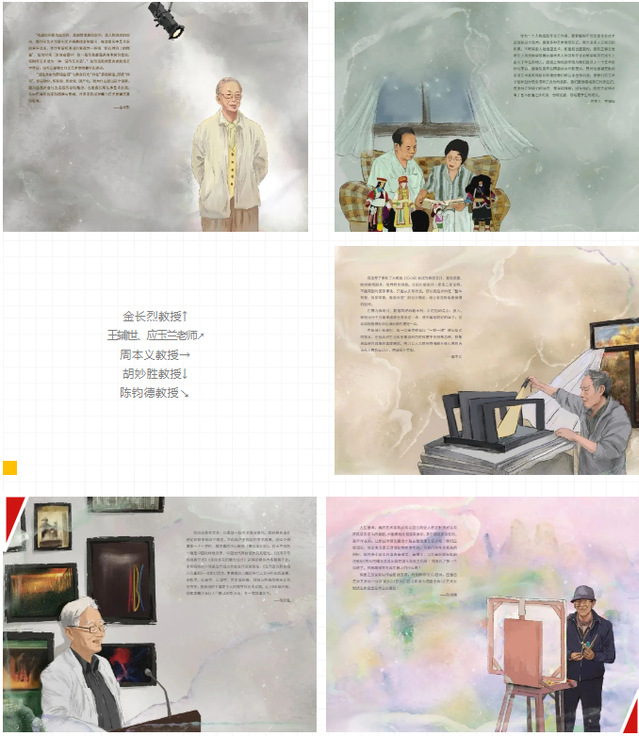 在此次主题党日活动中,舞美系学生党员、入党积极分子学生骨干还将几个篇章中提到的舞美系大师等人的形象手绘了出来(见文内手绘图),并在陈晔老师的指导下制作为笔记本,以文创的方式呼唤大家不断“追光”。