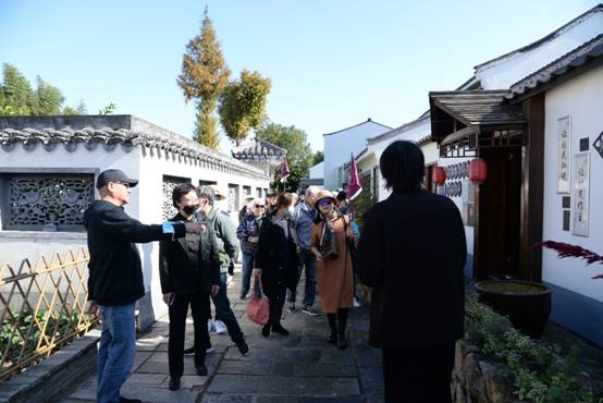 在学习培训期间,离退休党员们还参观考察了吴房村和上海天文馆。吴房村入选上海首批九个乡村振兴示范村,被推介为2018中国美丽休闲乡村,并获评第六届全国文明村镇,入选2020年全国生态文化村。在村会议室,讲解员为党员同志们播放了短视频《青春吴房》并讲解了在国家乡村振兴战略指导下,吴房村与高校、企业加强合作因地制宜打造黄桃产业品牌,并开发文创旅游等项目,成功地从名不见经传的小村庄“蝶变”成为如今深受大家喜爱的“网红”村的发展历程。听完介绍,老同志们沿着乡间小路漫步于吴房村参观,曲径通幽、移步换景,绿田白墙黛瓦、小桥流水人家缓缓呈现于眼前,让大家深切感受到“将美丽绘于乡村,让艺术留住乡愁”的设计理念、百年文化村落的青春和美丽乡村建设的魅力篇章。