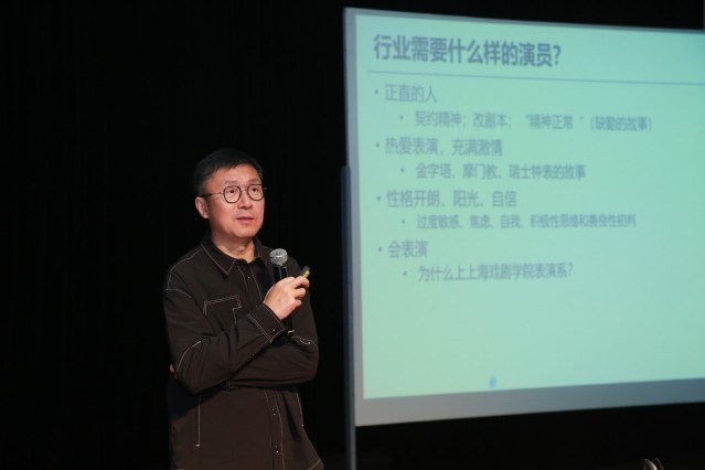 接下来的讲座中,龚宇先生以其多年的行业掌舵经验为同学们指点迷津。 “现如今行业发展下,市场需要何种演员”是在校表演系同学们一直想要探究的一个问题。龚宇先生表示,爱奇艺从2015年开始涉猎自制剧,在多年以来的剧目制作过程中,他总结出以下几种演员是行业极度渴望合作的。首先,是演员的“契约精神”。演员作为整个行业中的一环,需要与各个部门有密切的合作与交流,而好演员的“契约精神”不仅体现在书面合同上的明文条款,也要包含口头契约,无论是任何行业,言出必行是非常必要的,这也是在行业内获得尊重的第一步。此外,在行业内有的演员会修改剧本,这一行为要有一定的“度”,从专业角度而言,对整部剧有正向提升的,剧本是可以有所调整的,但是如果只是为了一己私欲,那么修改剧本则不是必要的,要辩证的看待一切问题。同时,演员的“精神稳定”情况也是行业比较在意的,如果因为个人原因导致整体拍摄进度被延迟,是不被行业推崇的。