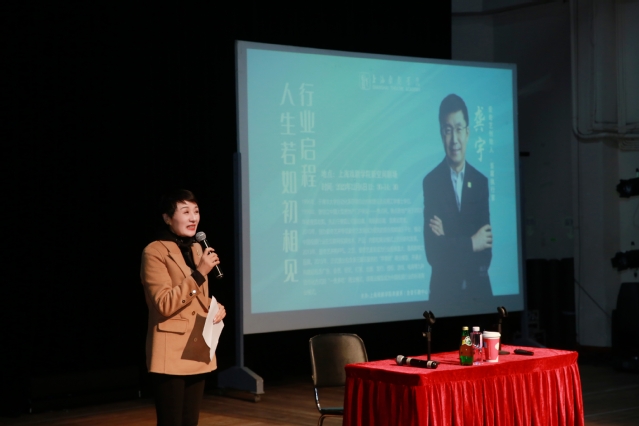 本场讲座在肖英教授的主持下展开。此外,表演系党总支书记王学明教授、副书记朱锋老师及各教研室老师共同在现场,与同学们谛听了本次分享。
