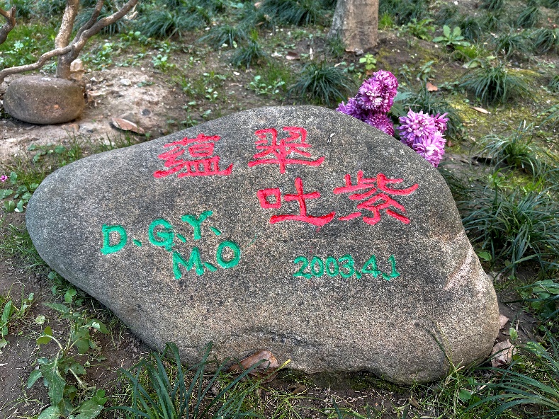 综合楼南面那五棵紫玉兰和石刻《蕴翠吐紫》的故事