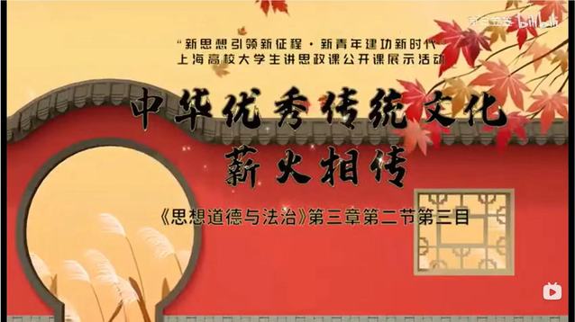 微课由施华东老师指导,曹嘉怡同学讲述,以图文并茂的形式,讲述了一名致力于讲好中国故事的大学生对中华文化代代相传的愿景与想法。作品通过诗词歌赋对《唐宫夜宴》《洛神水赋》两场节目进行引用与描述,展现了对中华传统文化的创造性转化与创新性发展正面典型。以《三体》为例阐述了在国际文化交流中如何以“求同存异”方式传播中华文化,抒发了新时代大学生对传承好中华优秀传统文化的向往。