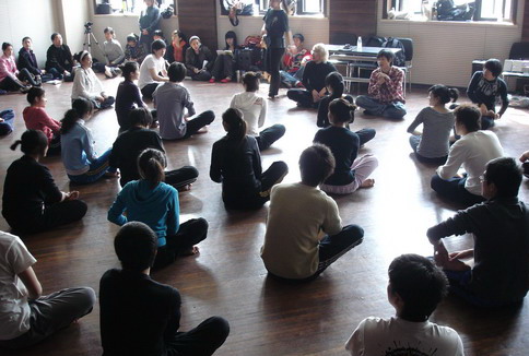 4月2日下午1点半,在红楼东排小剧场,我们开始了第一天的表演工作坊。日本著名的舞台剧导演长野和文及两位助教给我们带来了新鲜有趣的表演训练。参加这次活动的主要是表演系07级本科和07、08级MFA学生以及表演系的老师。