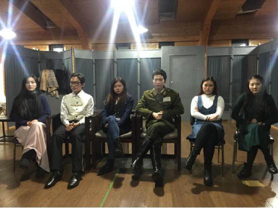 “片段”汇报,首先登场的是姜皖杭与张悦,她俩共同演绎了夸张、幽默的日本“狂言”独幕剧《伯母酒》,张悦饰演的“伯母”吝啬,充满喜感,姜皖杭饰演的“侄子”,醉态疯癫、生动有趣。之后,场上氛围一转,覃威尔饰演“斐迪南”,叶梦瑶饰演“露易丝”,二人情绪饱满地演出了席勒的经典悲剧《阴谋与爱情》。最后,随着《在中亚西亚草原上》的交响乐声响起,A组的李璐与汪晨雪,B组的李璐与叶梦瑶,配合其他的研究生,依次再现了王昆老师和徐企平先生倾注心血的佳作《北极风情画》。在肖邦的“离别曲”中,这一出发生在俄国,传诵在中国的韩国军人“林上校”与波兰少女“奥蕾莉亚”的战争奇缘戏剧为此次期末汇报划上了句号。