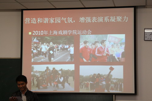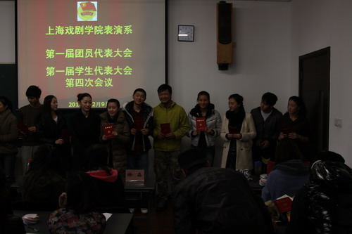 2010年12月9日中午12点在红楼201多媒体教室召开了表演系“第一届团员代表大会、第一届学生代表大会第四次会议”,会议由表演系学生会副主席李欣颖主持。参加会议的有学工部主持工作副部长徐咏老师、学工部副部长陈云老师、团委副书记徐晶老师;表演系党支部书记何雁、表演系党支部副书记王学明老师、表演系学生党支部书记、专职辅导员陈莹老师以及学生会成员和各班团员、学生代表。