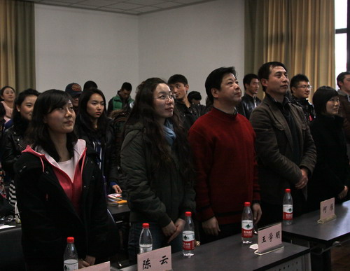 会议最后徐咏老师总结发言,对表演系的学生会工作给予了高度的评价,对四位见义勇为的同学提出了表扬,并希望表演系新一届学生会干部再接再厉,创办更多丰富多彩的校园文化活动。最后在国歌声中结束了这次会议。