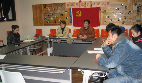 2010年12月6日在红楼102教室召开了关于郭永建同志转为正式党员的支部大会,会议由表演系学生党支部书记陈莹老师主持。表演系党支部副书记王学明老师出席会议,学生党员秦晓飞、预备党员刘畅、梁立文、刘洋、杨懿、张梓暄也参加了会议。