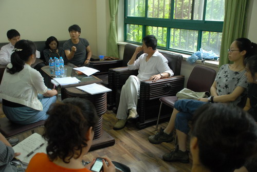 接着,何雁老师就我系开展“学习型党支部”的设想征求广大党员与老师的意见。随着上海戏剧学院对外学术交流的日益增多,越来越多国际一流水平的表演教学方法进入老师们的视野,老师们对自己的专业发展也有了更高的要求。为了帮助表演系教师更系统地学习国内外高水平的表演教学方法,推动表演系教学走向国际先进水平,党支部决定从下个学期开始,每两周组织一次学习活动,集体观摩俄罗斯、德国、意大利等国一流艺术学院的训练课程,并作讨论与总结。希望借此机会,形成表演系浓厚的学术氛围,给各个年龄段的教师提供一个专业交流、学习的机会,并推动年轻教师的快速成长。表演系全体党员及与会的其他老师纷纷表示赞同,吕岩、孙鱼洋等教师发表自己的建设性意见,共同期待下个学期“学习型党支部”活动的展开。