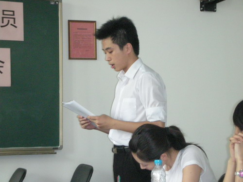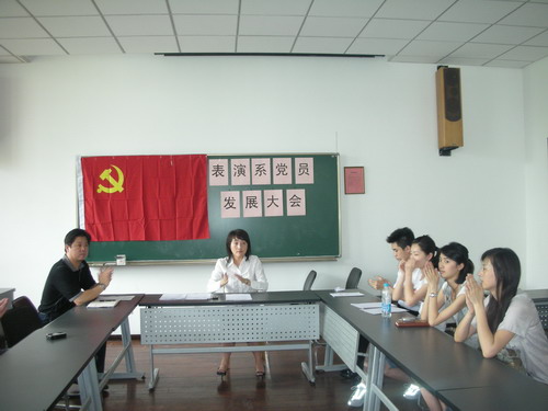 6月19日中午12点15分在红楼201教室,表演系学生党支部隆重地召开了表演系06级音乐剧班王楠同学的党员发展大会。与会的领导老师有,表演系王学明老师和陈莹老师,另外,到会的还有表演系的正式党员、预备党员,以及入党积极分子和表演系学生会成员。会议由陈莹老师主持,表04学生党员鞠小菲同志担任大会记录。会议在紧张严肃的气氛中圆满结束。