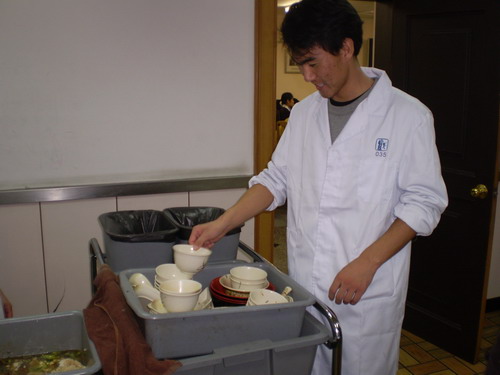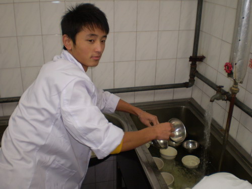 每天中午,食堂里总可以看见三个穿白色制服的学生,他们搬运碗碟、倒垃圾、洗碗筷,忙得不亦乐乎。他们便是表演系08级内蒙班的吉日嘎拉、额尔敦巴特尔以及阿日根。三位同学以自食其力为准则,不怕劳苦,不惧艰辛,努力工作着。他们用自己的劳作,赢得了所有人的尊敬。同时,参加这样的勤工助学,也让他们体验到了别样的生活,感受到服务行业的艰辛,从此更珍惜别人的劳动。