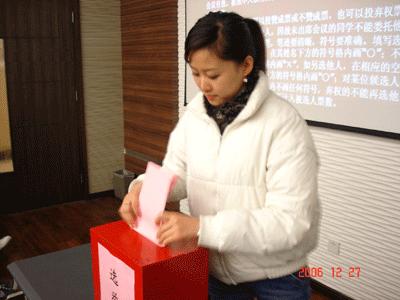 2006年12月27日晚上18:15分,表演系第一届团总支与学生会选举大会在红楼209室顺利召开。共有105名同学参与了此次选举,为保证大会公正性,会议主持人、监票人均由毕业班同学担任。会上,16名由各班推选出来的候选人先后上台进行两分钟的演讲,或激情满怀、或踌躇满志,表达了他们愿为表演系学生工作贡献力量的决心与信心。整个选举大会高潮迭起,台上台下互动频繁,同学之间情意融融。竞选演说完毕后,与会的同学认真地投出神圣的一票,选出自己心目中的团总支及学生会委员。