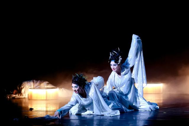 肢体剧《白蛇》的舞台呈现堪称一场视听盛宴。它以高度凝练、写意灵动的身体语汇,巧妙融合了中国传统戏剧的优雅韵律、现代舞的自由奔放、武术的刚劲有力等多种艺术形式,营造出极具东方美学韵味的舞台表达。演员们的每一个动作、每一个姿态都仿佛是一幅流动的画卷,将东方文化的深邃与灵动展现得淋漓尽致,让观众仿佛穿越时空,置身于那个充满奇幻色彩的神话世界。