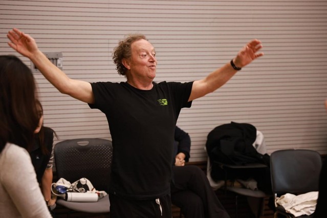 在肢体基础训练之后,课堂进入核心探索环节——“1-10分情绪肢体表达”。保罗先让学生用常规动作展现不同强度的情绪,帮助大家梳理“情绪强度与肢体幅度”的常规关联;随后,他抛出反常规命题:“如果10分的喜悦用蜷缩身体、缓慢微笑来表达,7分的悲伤用轻快踮脚、指尖轻颤来呈现,会有怎样的效果?”他还结合《卓别林前传》的创作思路举例:“剧中卓别林表达无奈时,从不用皱眉叹气,而是用‘弯腰、双手缓慢摊开’的动作,让观众从肢体节奏里感受到角色的委屈与幽默。”在保罗的引导下,学生们纷纷尝试“情绪与肢体的错位表达”——有人用“小幅度原地转圈”展现10分惊喜,有人用“指尖快速敲桌”传递3分焦虑,在不断试错与调整中,逐渐领悟“非常规肢体表达能让角色情绪更独特、更有感染力”的核心逻辑。