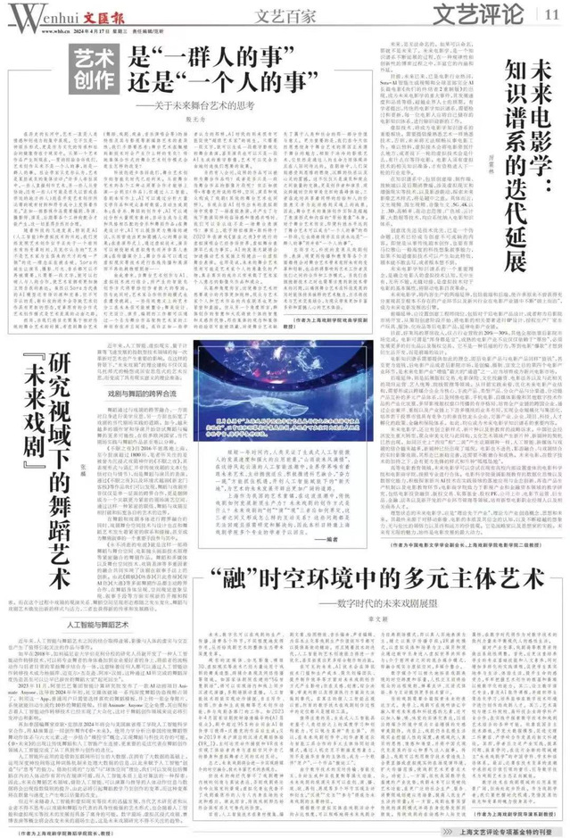 在“未来戏剧学”的框架下,依托上海戏剧学院建设的数字演艺集成创新文化和旅游部重点实验室、上海市虚拟环境下的文艺创作重点实验室,与上海理工大学共建的科艺融合创新研究院等,展现了人工智能时代艺术与科技融合的广阔前景。中国剧院发展研究中心获评文化和旅游部研究基地,全球城市文化协同创新中心入选上海高校智库。上海市戏曲文化协同创新中心,上海戏剧学院中国戏剧高等研究院、舞蹈协同创新中心、国际导演艺术协同创新中心、中外戏剧译介中心,中国高等院校影视学会影视表演创研中心等机构的建立与建设,都夯实了“三大体系”建设基础,拓宽了“三大体系”发展平台。