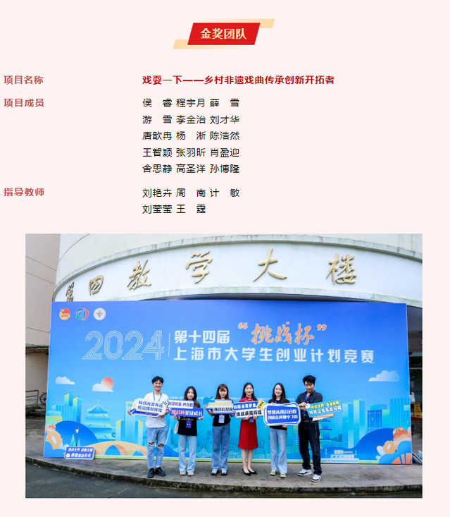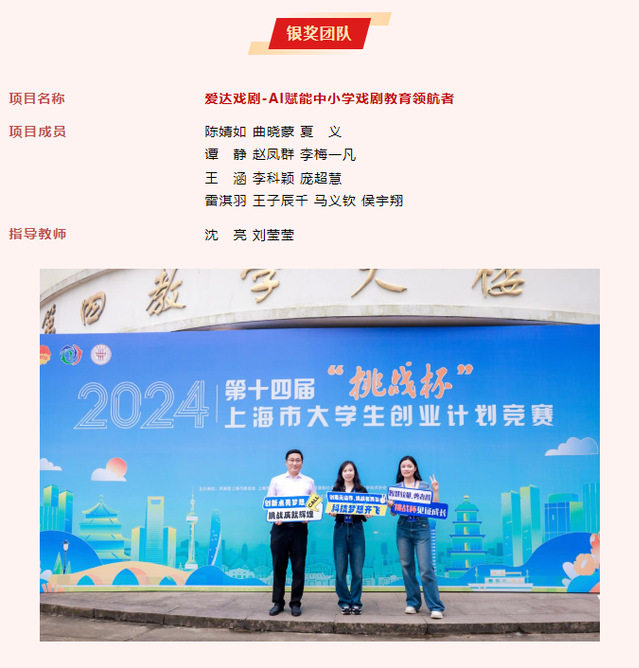 “挑战杯”创业计划竞赛作为科技创新工作的主要竞赛阵地,发挥着科技育人、实践育人、竞赛育人的重要作用。在校党委的领导下,学工部团委将持续推动青年学生参与创业实践,进一步培养上戏学子创新精神和创业能力,以创新驱动发展战略为引导,在中国式现代化征程中展现青春力量。