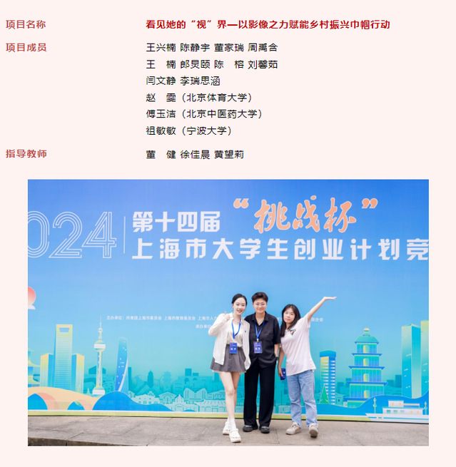 备赛过程中,学工部团委积极组织、精心筹备,开展多轮次线上线下培训、路演模拟答辩等,帮助参赛师生更好了解赛事规则,不断优化参赛方案。历经项目评审、专题培训、分组指导、复赛路演等阶段,最终五项作品被遴选参加上海市大学生创业计划竞赛并斩获佳绩。
