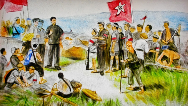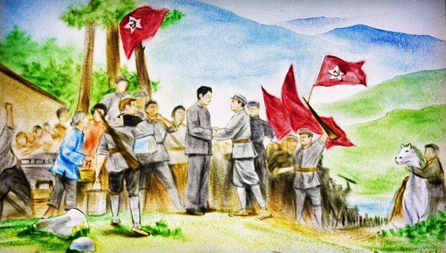 沙画创作《朱毛会师》《三湾改编》,通过彩色沙子的流动和形状变化,生动再现当年那些庄严的历史瞬间,以独特的视觉形式传播井冈山精神。