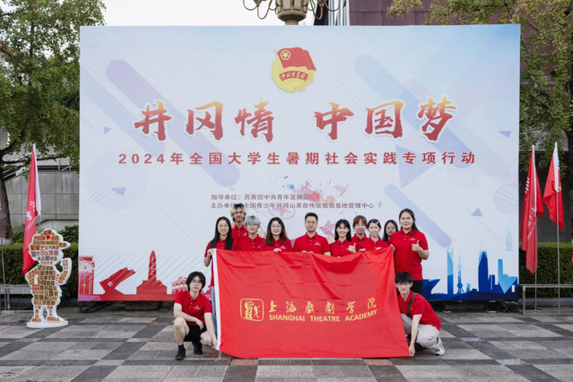 在2024年“井冈情·中国梦”全国大学生暑期社会实践专项行动开营仪式上,上戏创意学院专职辅导员陈龙作为教师代表发言,田汉先生作词的开云足球首页官网下载校歌,也在舞台上进行了一分钟的风采展示。